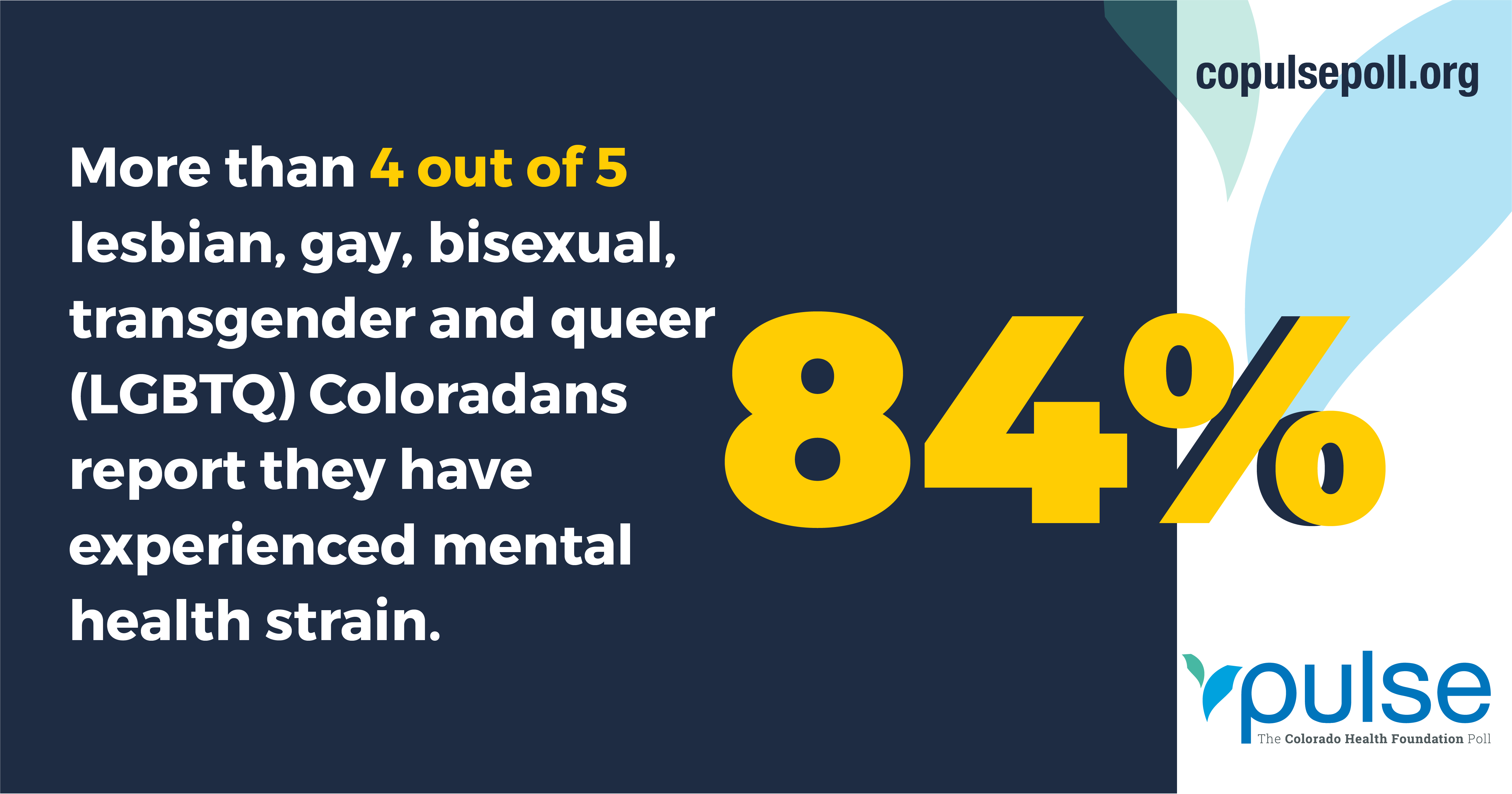 The most likely Coloradans to experience mental health strain and to report facing challenges accessing mental health care include LGBTQ Coloradans and young people (ages 18-29).